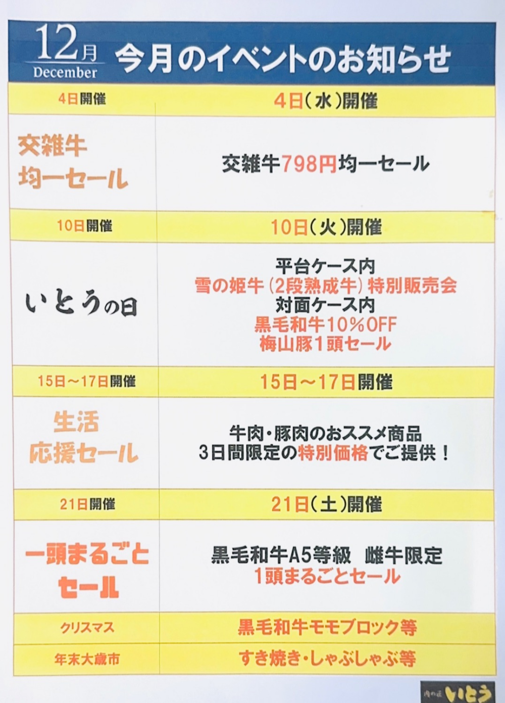 B1F 食品/ 肉の匠 いとう 2024.12.04 12月のお買い得‼️ 皆さまこんにちは😊‼️ 肉の匠いとうからの12月 お買い得情報でございます✨✨ 師走に入り忙しい毎日に イベント等にも是非ご活用下さいませ! 皆様のご来店を心よりお待ちしております ご褒美ギフト イベント お土産 お得情報 バイヤーおすすめ 自分ご褒美 クリスマス イエナカ おうち時間 商品情報 セール スタッフおすすめ 期間限定 生鮮食品 BACK 1 2 3 4 ⋯ 30 NEXT