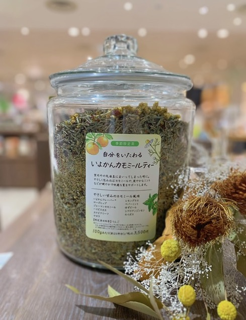 毎年大人気の限定ブレンドですが、ハーブがはじめての方でも飲みやすい、いよかん香る優しい甘みのカモミール風味のブレンドはご家族皆様でも美味しく取り入れて頂けますよ!