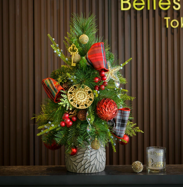 松ぼっくりや、最新トレンドを取り入れたオーナメントを