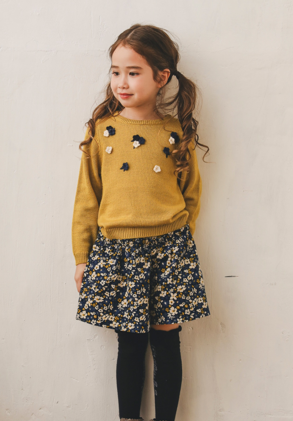 マスタードにオフホワイトとネイビーのお花がポイントになっています💙