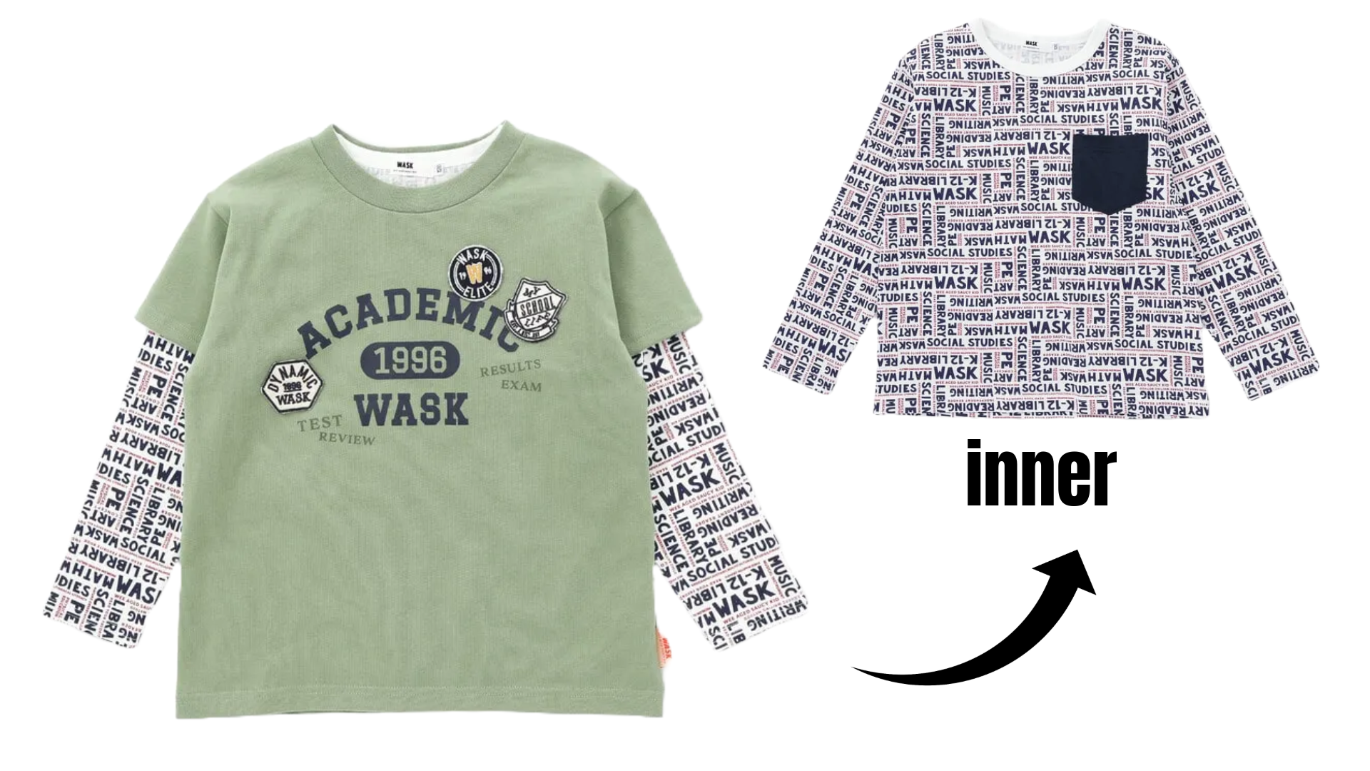 長袖Tシャツにはワスクのロゴ柄デザインも!
