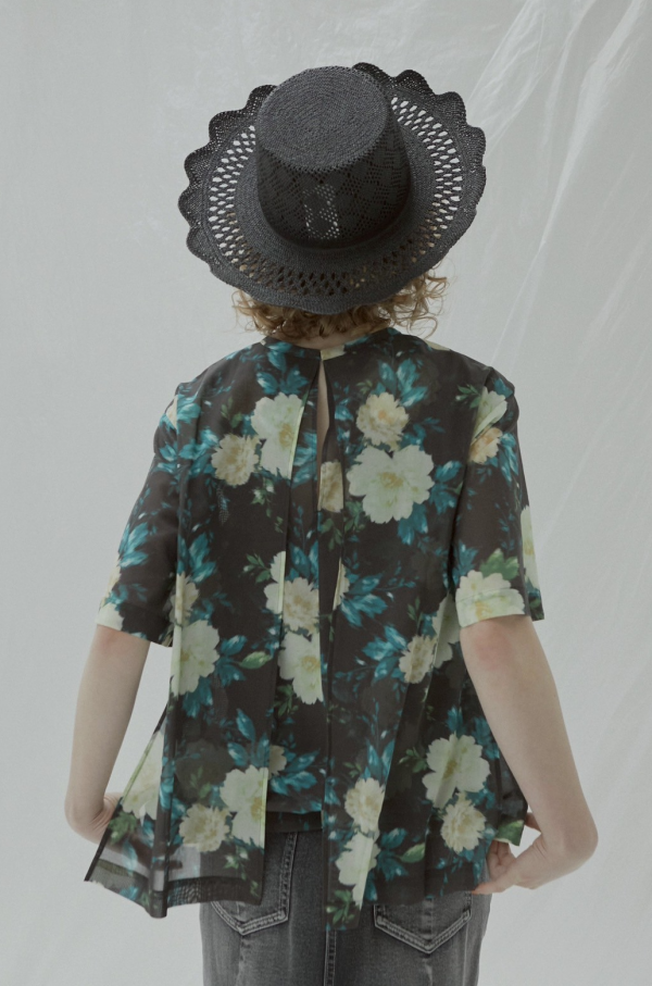 透け感のある素材なので、インナーキャミソールはあえてカラーを取り入れ、色の組み合わせを楽しんでいただける一枚です。