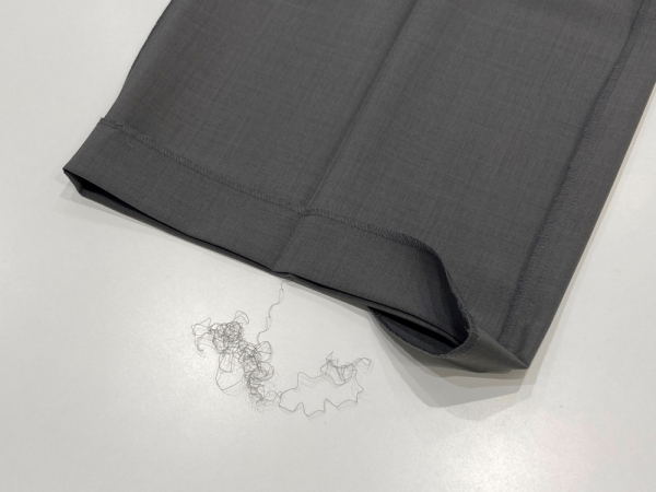 また、裾がほつれてくるのが“イヤ“という方には、ステッチ仕上げに変更することもできます。商品をお持ちになり、スタッフにご相談ください。(表にミシン目が見えるお仕上げとなります。)