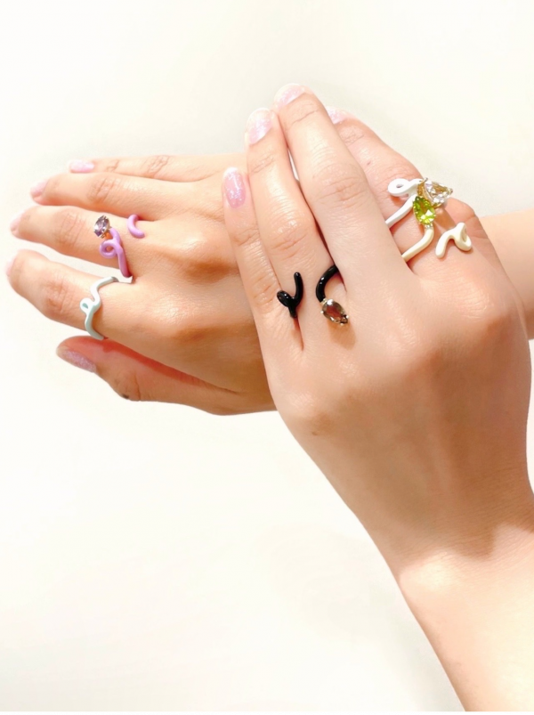 リング 左から: WHITE&PURPLE / TURQUOISE 各102,300 円 (税込)