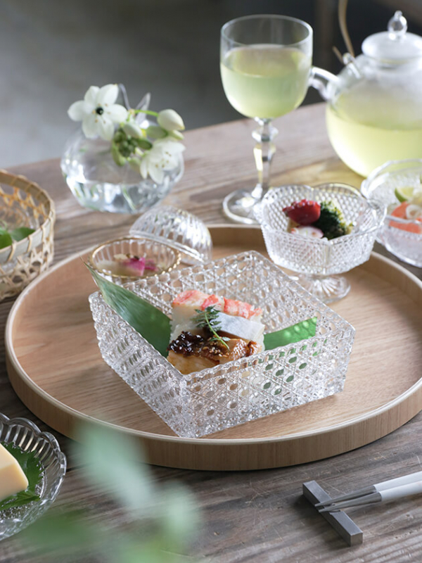 透明感と繊細なデザインが、いつものお料理をさらに美しく引き立ててくれます。