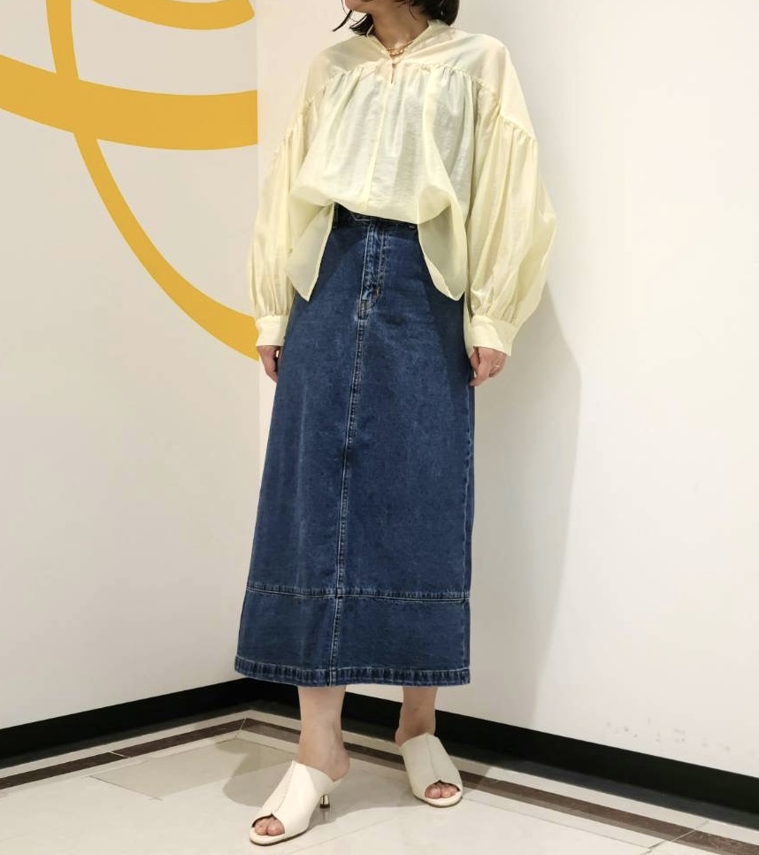 ソフトAラインのデニムスカートを合わせたコーディネイト☆