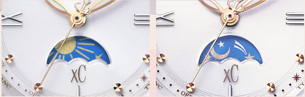 太陽と月のモチーフが、時間の経過とともに移動するサン&ムーン機能。