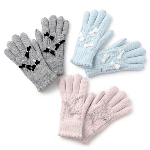 ベロアリボンと輝くビジュー使いが上品な手袋です