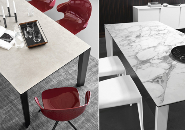 セラミック天板とメタル脚の伸長式ダイニングテーブルです。