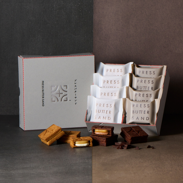 PRESS BUTTER SANDの代表商品となる2つの味わいを一度に楽しめるひと箱!