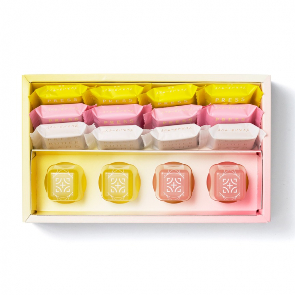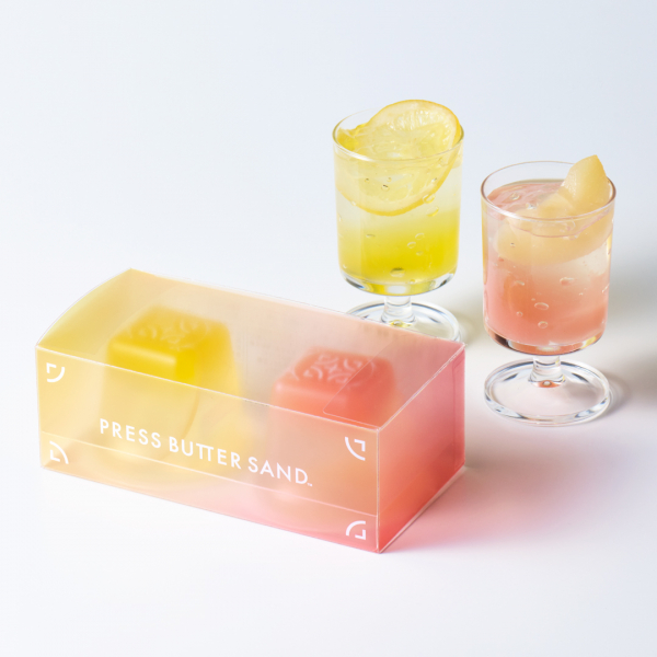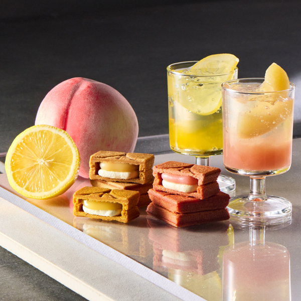 バターサンド〈桃〉は桃ガナッシュと桃バタークリームの2層仕立てで、果実そのものを食べているかのような濃厚で甘酸っぱいひとくち。バターサンド〈檸檬〉は瀬戸内産レモンを皮から果汁まで余すことなく使い、すっきりした酸味、爽やかな香り、ほのかな苦味が食べた瞬間に広がります。
