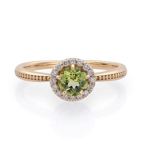ペリドットの周りをダイヤモンドで囲んだ華やかなデザイン✨