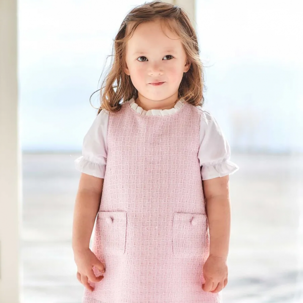 花びらのような可愛らしいピンクのラメツイードは春の風を感じながら