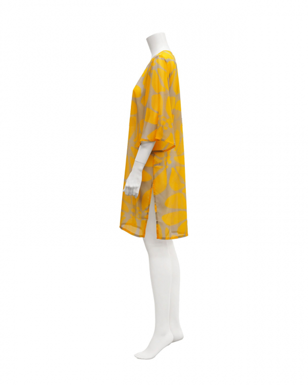 鮮やかなイエローフラワーのプリントが印象的な一着