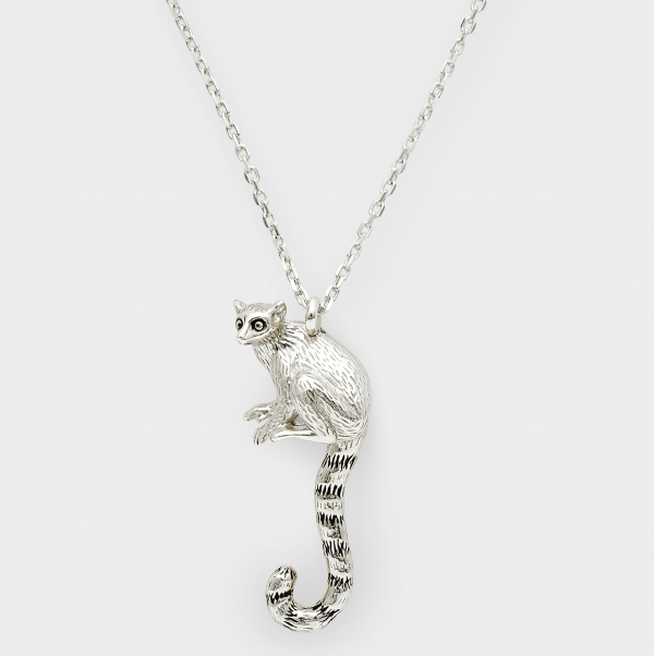 ワオキツネザルのユーモラスな魅力をネックレスで表現しました。