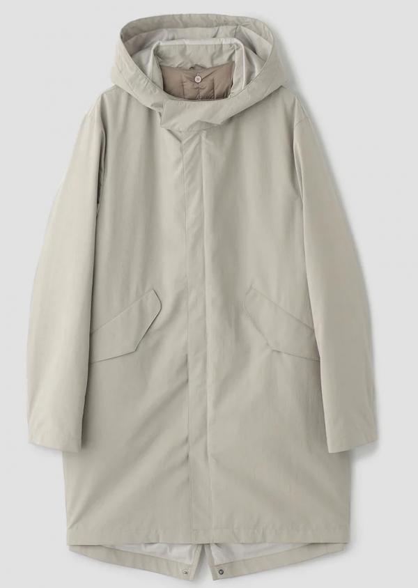ミリタリーウェアをベースにタウン向けのミニマルなデザインにアレンジしたモッズコート。