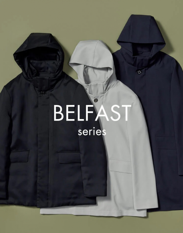 スタンドカラーとフーデッドコートの2WAY仕様で着こなせる「ベルファスト」シリーズや、