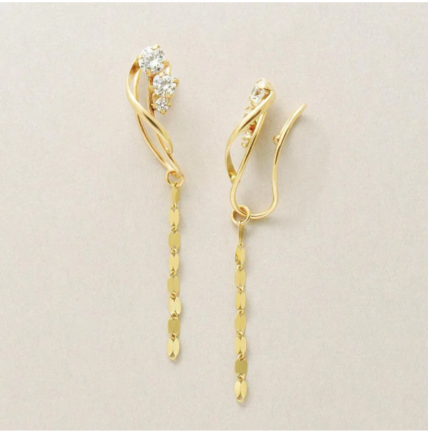 つやめく地金の曲線を沿えたイヤリング