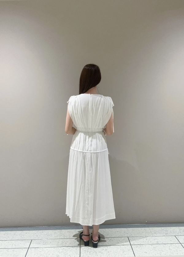 肩線に共地のリボンを通して調整可能な仕様にしているので、ギャザーをたっぷり入れたノースリーブとしても、長く伸ばして腕周りをカバーして着用することも可能です🎀