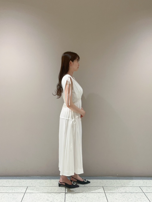 フロントはカシュクールデザインで女性らしく、すっきりとしたVネックで涼し気な印象に🌻
