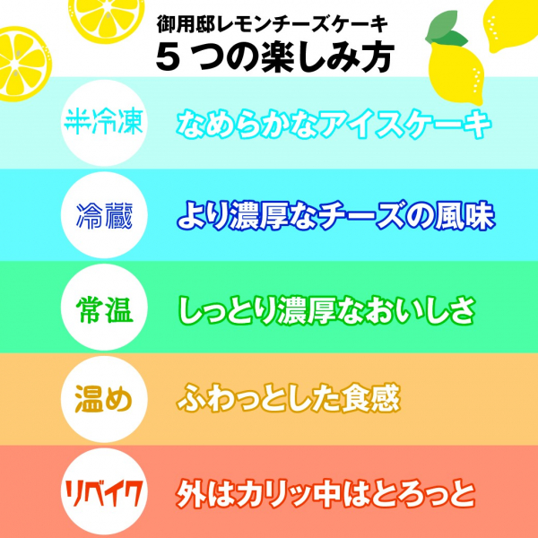 しっとりとした食感とチーズの濃厚な味わいは残しながらも、レモンの香りと酸味があと味としてひろがることで、よりさっぱりとした爽やかな味わいがお楽しみいただけます✨