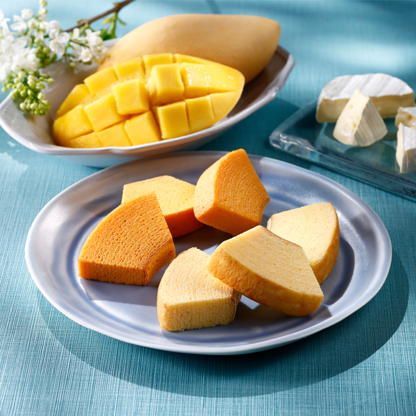 『マンゴーチーズバウム』は、国産の卵とクリーミーなカマンベールチーズを使用した生地にマンゴーピューレなどを混ぜ込み、しっとりと焼き上げたオレンジ色が鮮やかな一品です🥭🥭