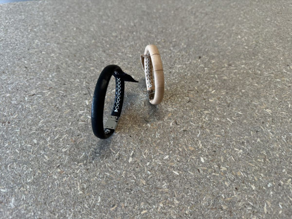 ロー引きされた天然の麻糸で一つ一つ手縫いで仕上げ