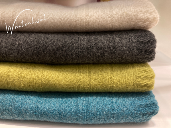 アラン編みニットをイメージした組織で織り上げた、表情豊かで肌触りのいいウールストール。