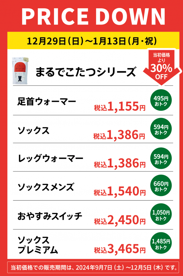 年末年始のお出かけの必需品、防寒グッズもプライスダウン!
