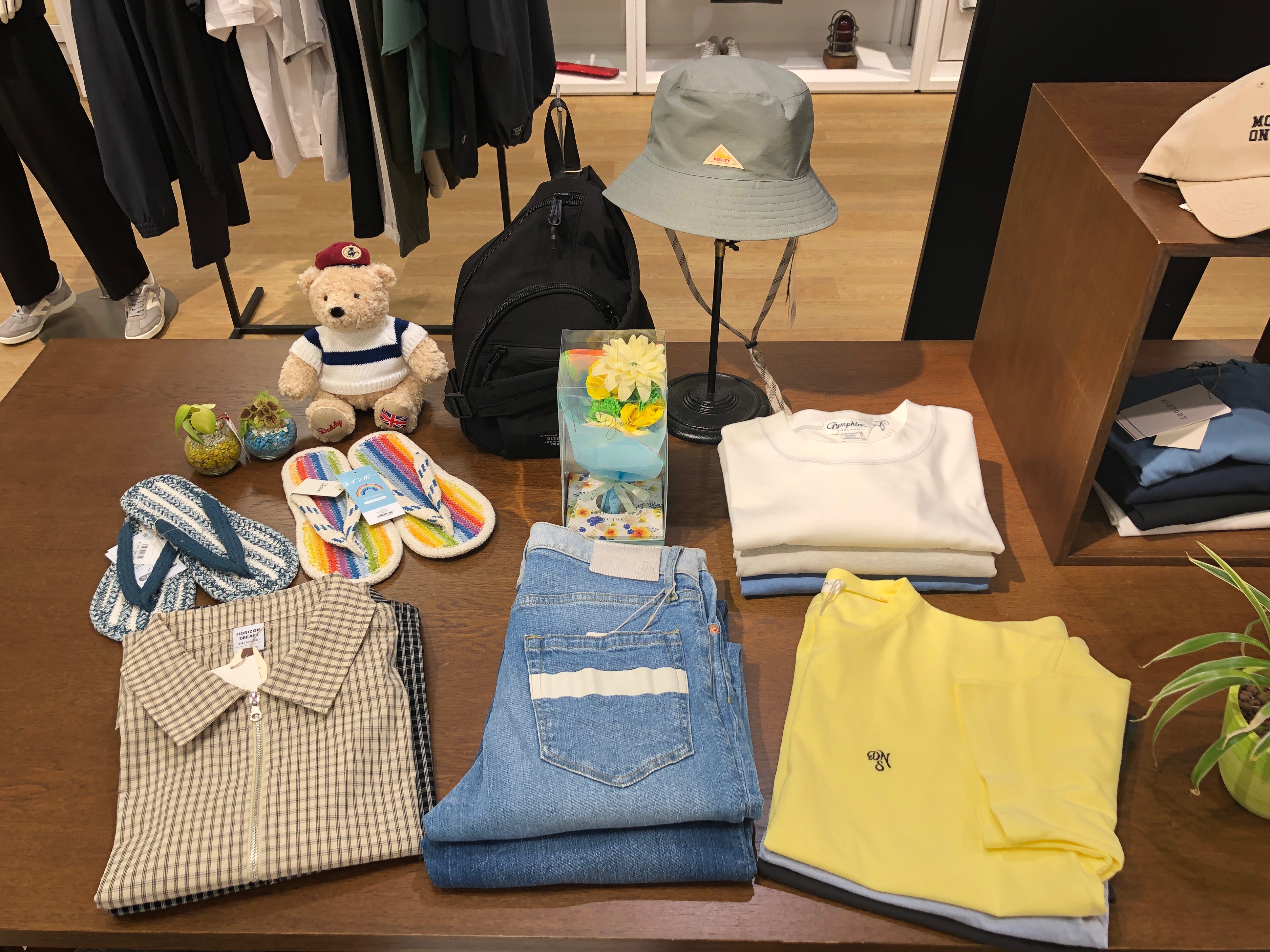 店頭ではプレゼントにピッタリのTシャツやジーンズなどのアパレルアイテムに加えて、バックや帽子など人気商品が豊富に揃っています☆★