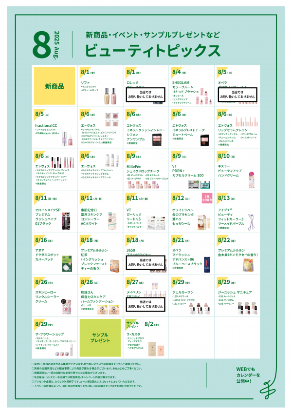 4F その他 プラグスマーケット 2025.08.01 8月のビューティトピックス 4階 プラグス マーケット 下関店 8月のビューティトピックスをご紹介します。 新商品やハンズ先行販売、サンプルプレゼントなど盛りだくさん! ぜひチェックしてください! 自分ご褒美 新作 新色 プチギフト スタッフおすすめ 人気商品 メイクアップ スキンケア ベースメイク リップ アイメイク ネイル ヘアケア サンプル 1 ⋯ 40 41 42 43 44 ⋯ 319