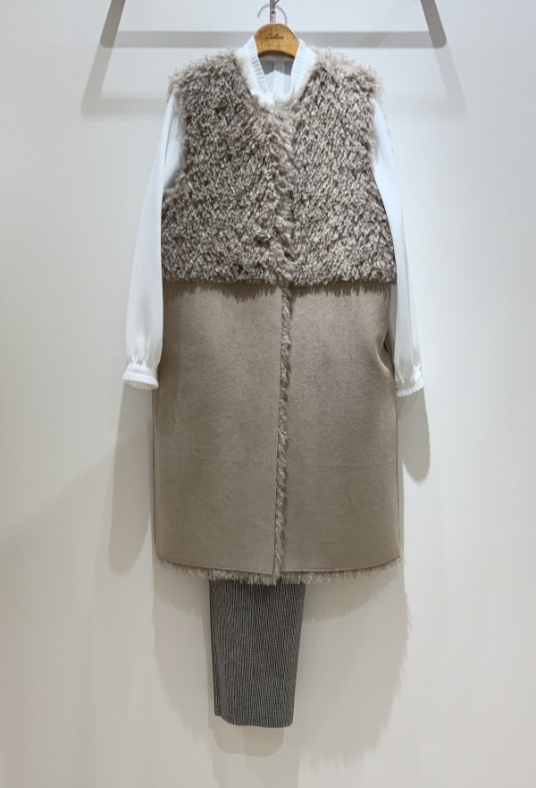 リバーシブル仕様のカーリーなエコファーとエコスエードをMIXした