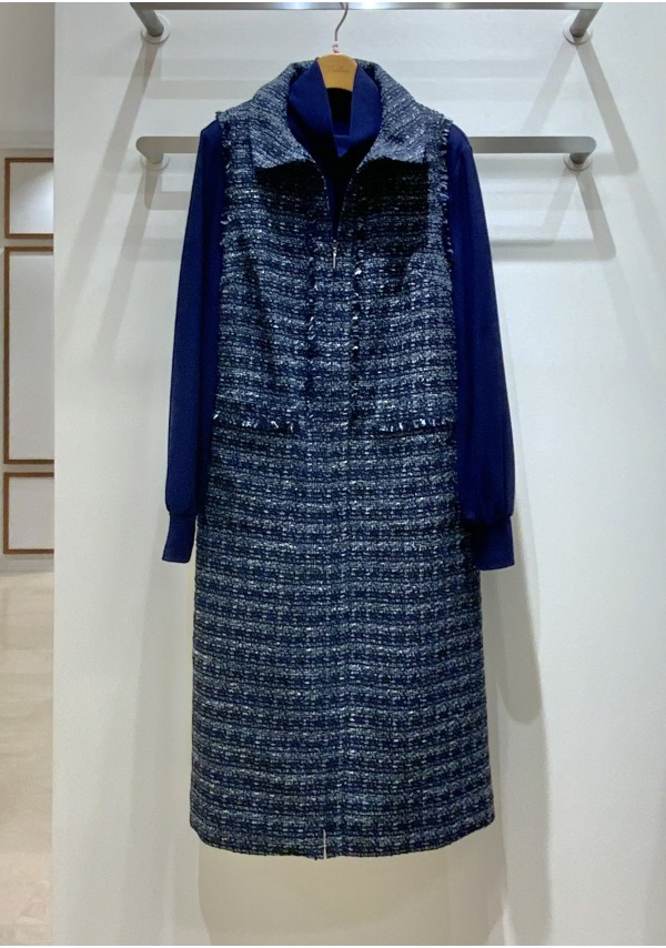 意匠糸を使用した尾州産のツィード素材で、下までファスナーが開くため