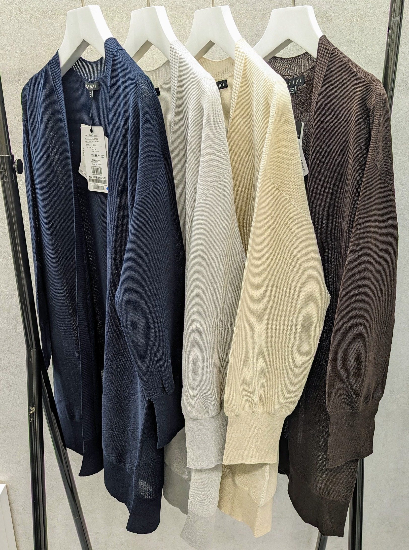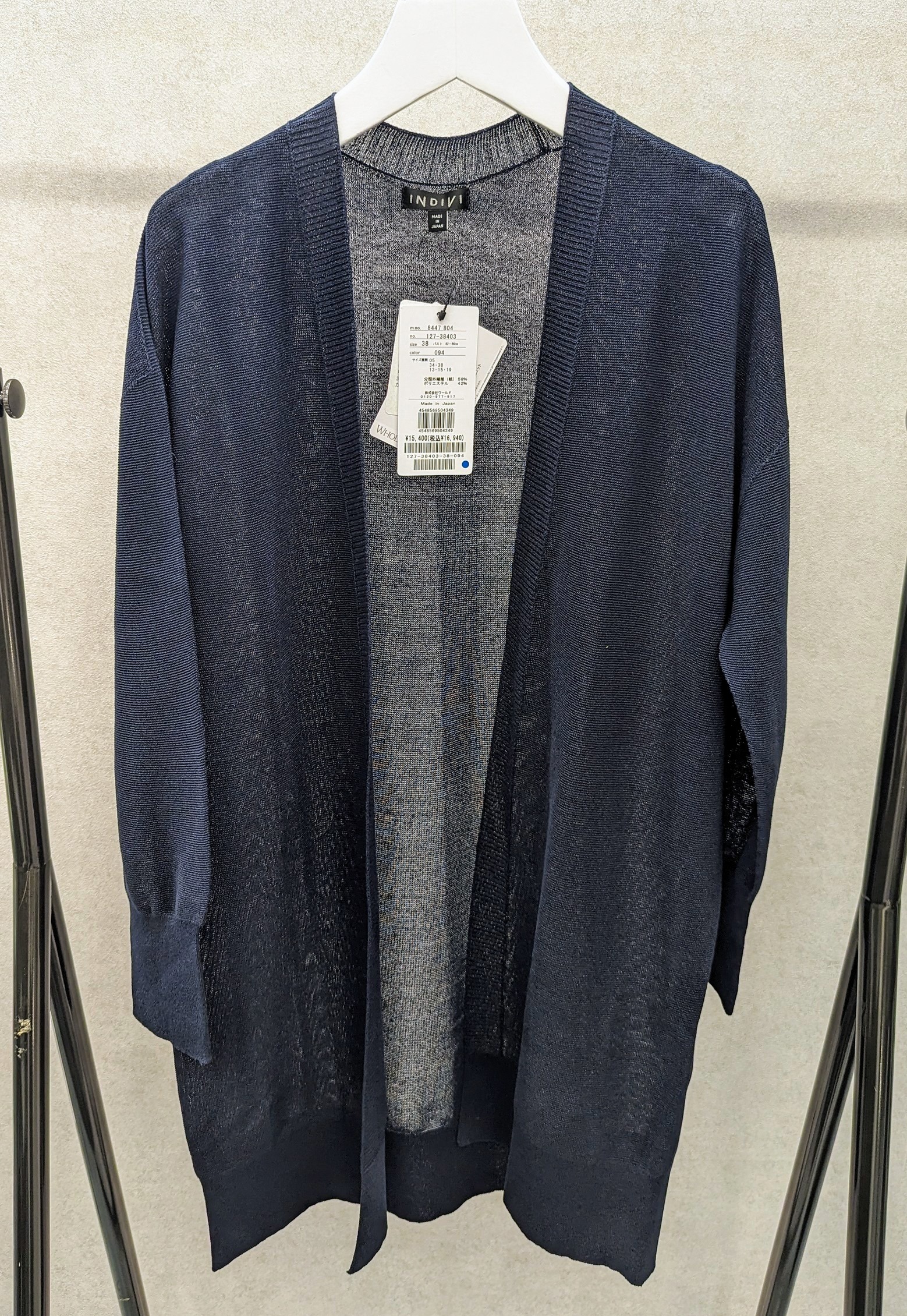 ドライタッチでシャリ感があり肌離れ良く、これからの季節に重宝するボタンレスの羽織りです。