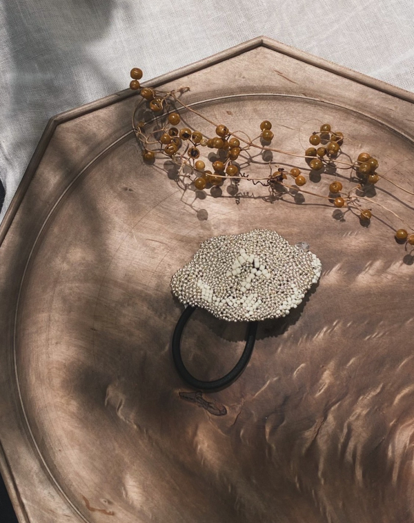 刺繍、真鍮作品を中心に制作。
