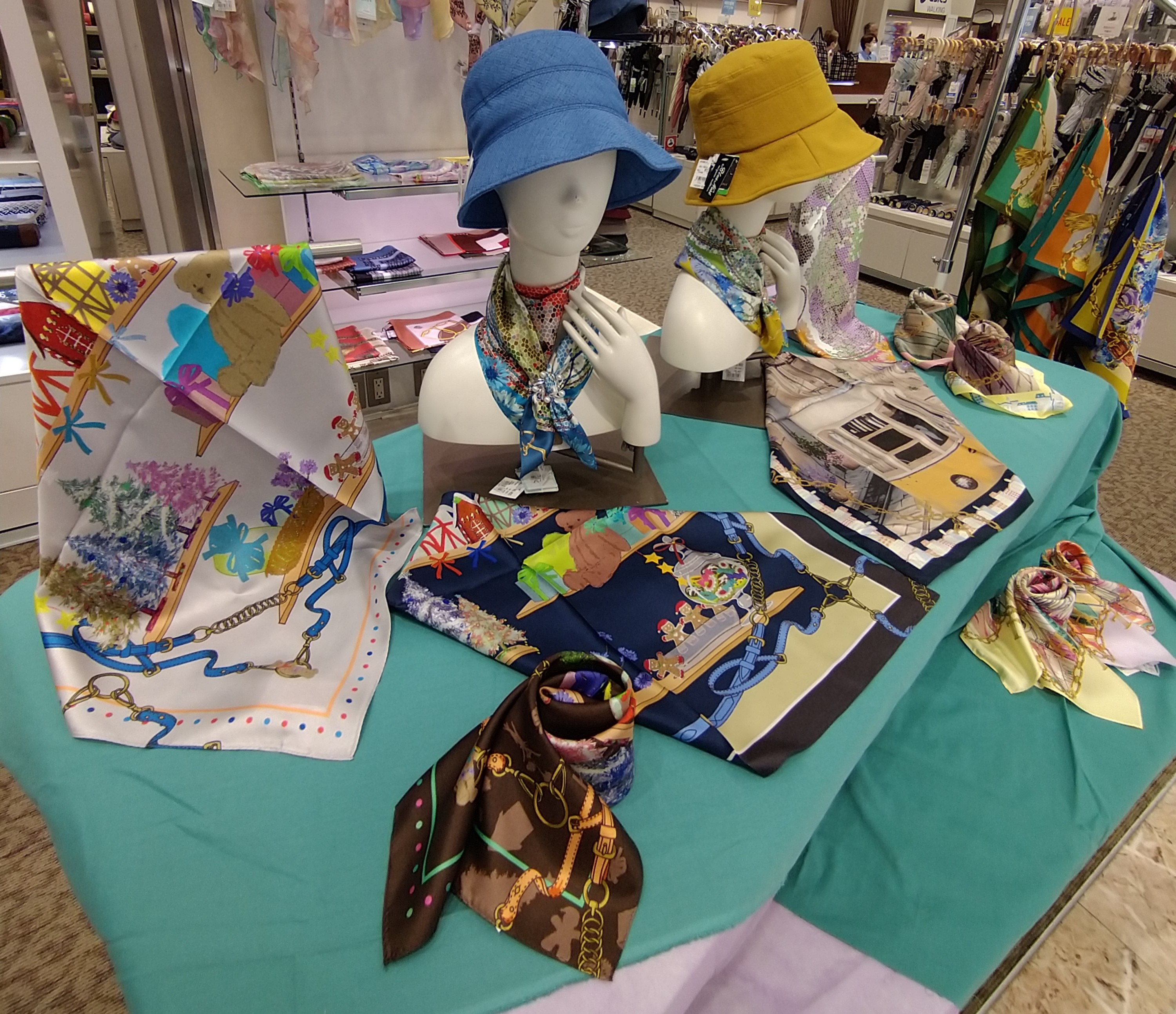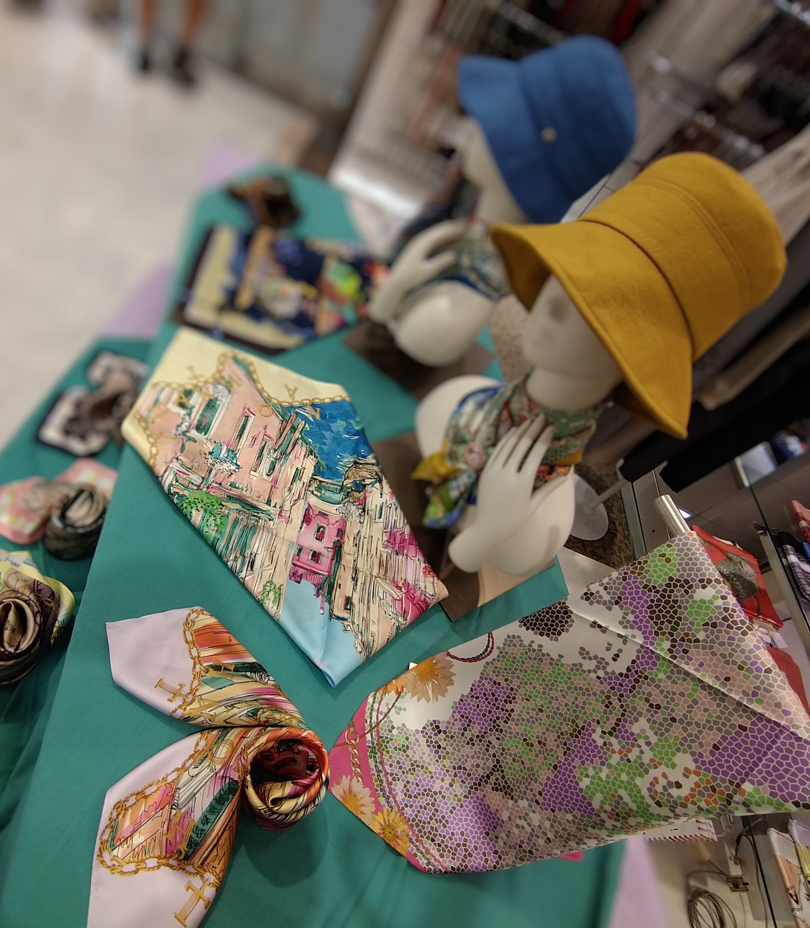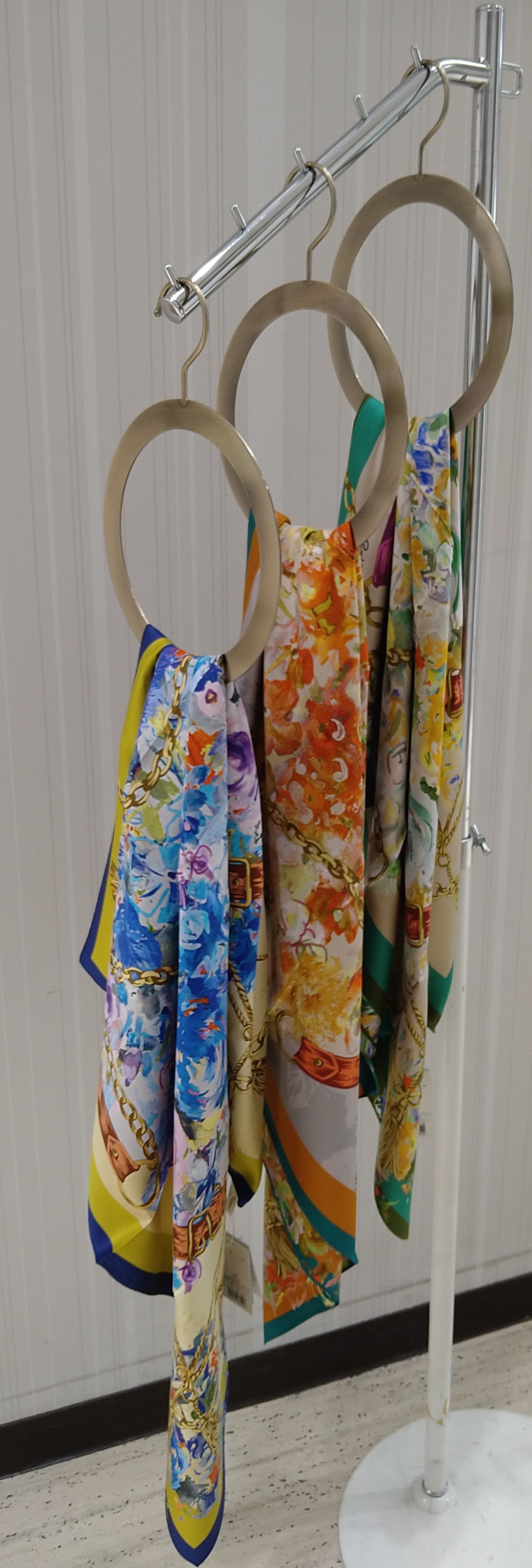 上品なシルクのスカーフは、細部から魅力を引き立て、様々なスタイルに合わせやすい