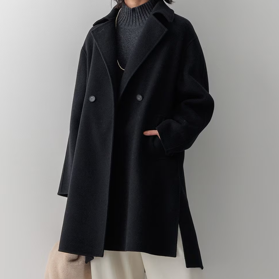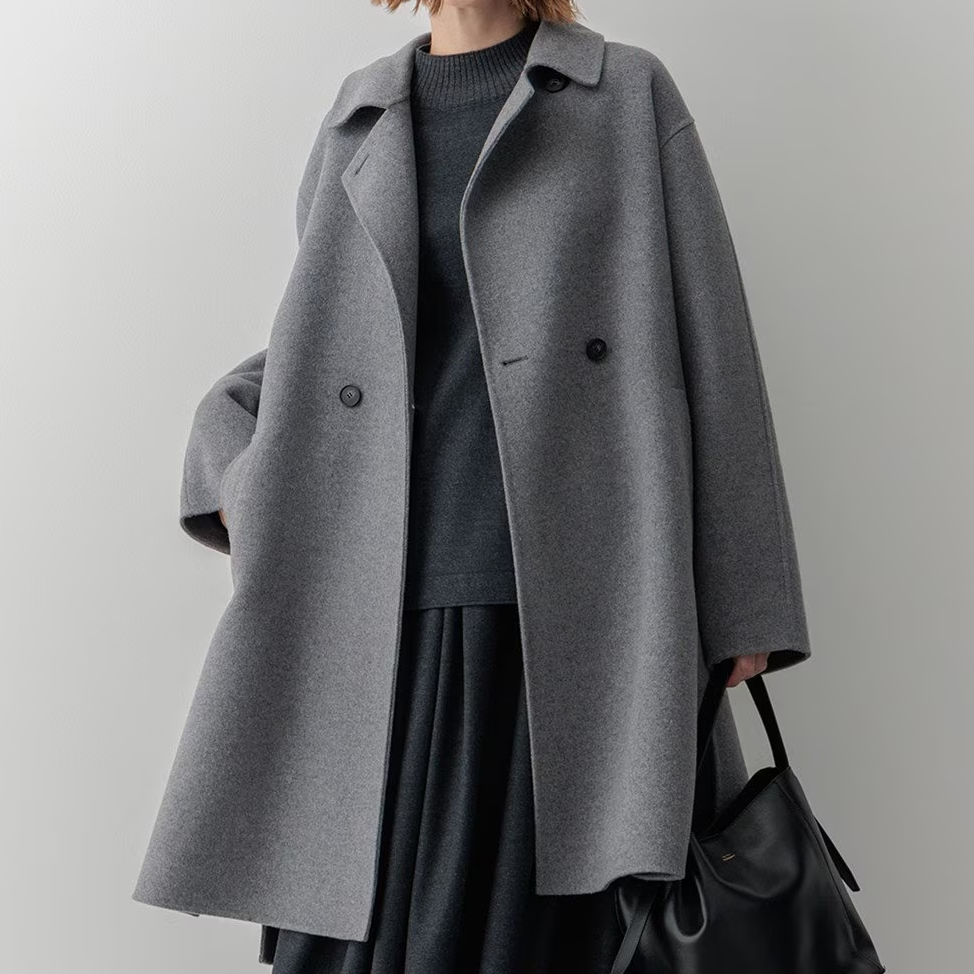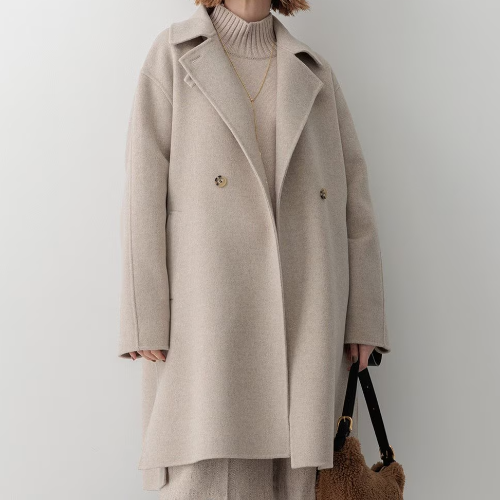 襟元の釦の止め方で様々な着方をお楽しみいただける優秀コート◎