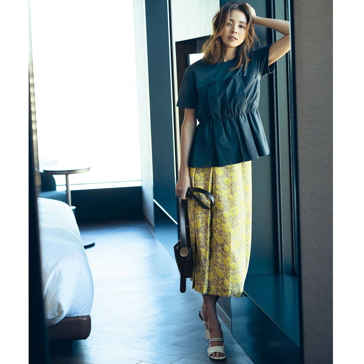 歩くとタックが広がり、シャープで上品なシルエットが特徴です!プリーツ加工は施していませんが、タック奥を1本ずつ裏で縫製することで、プリーツ加工のような永久的なタックのように作ったスカートです◎