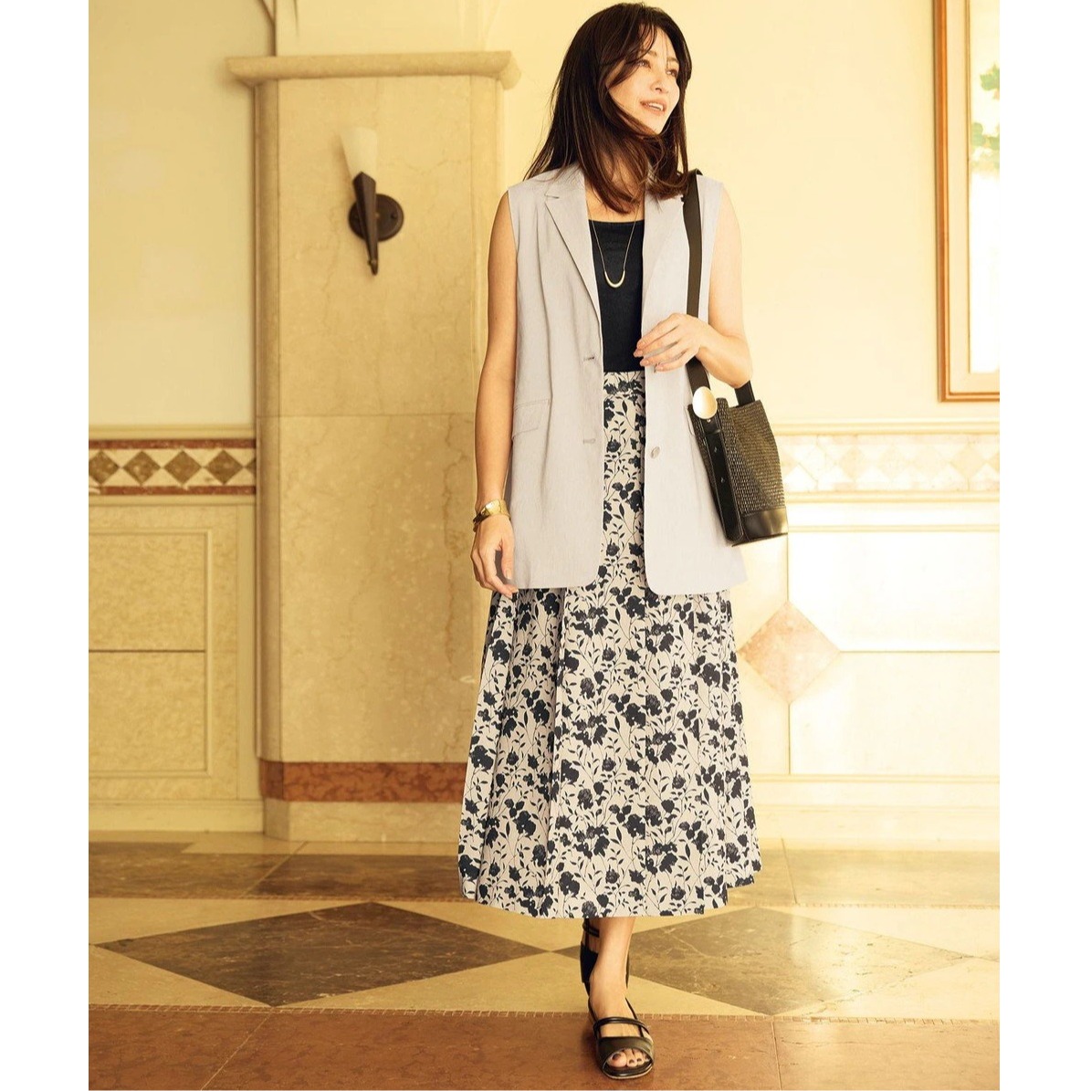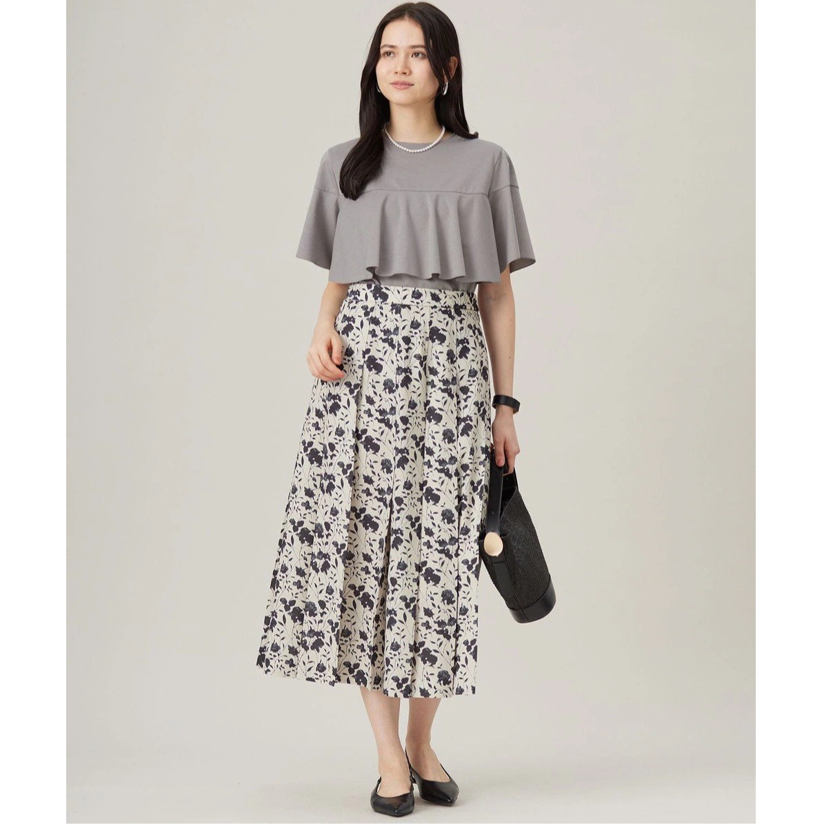 裾に向けてフレアした綺麗なAラインシルエットの花柄スカート◎