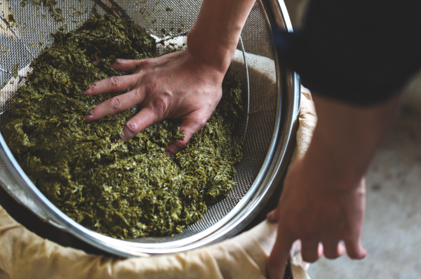 静岡の産業であるお茶の商品にならない茶葉を使用して染める『お茶染め』。