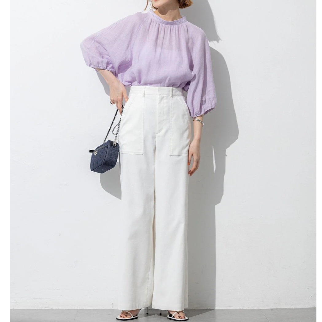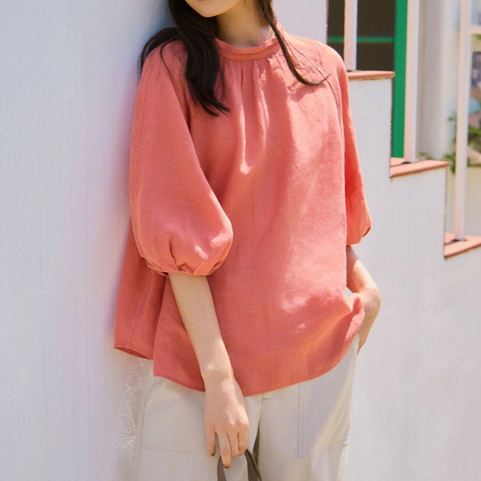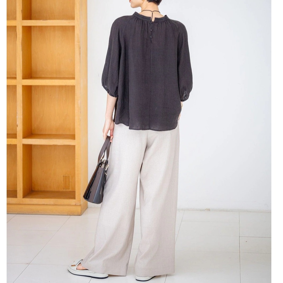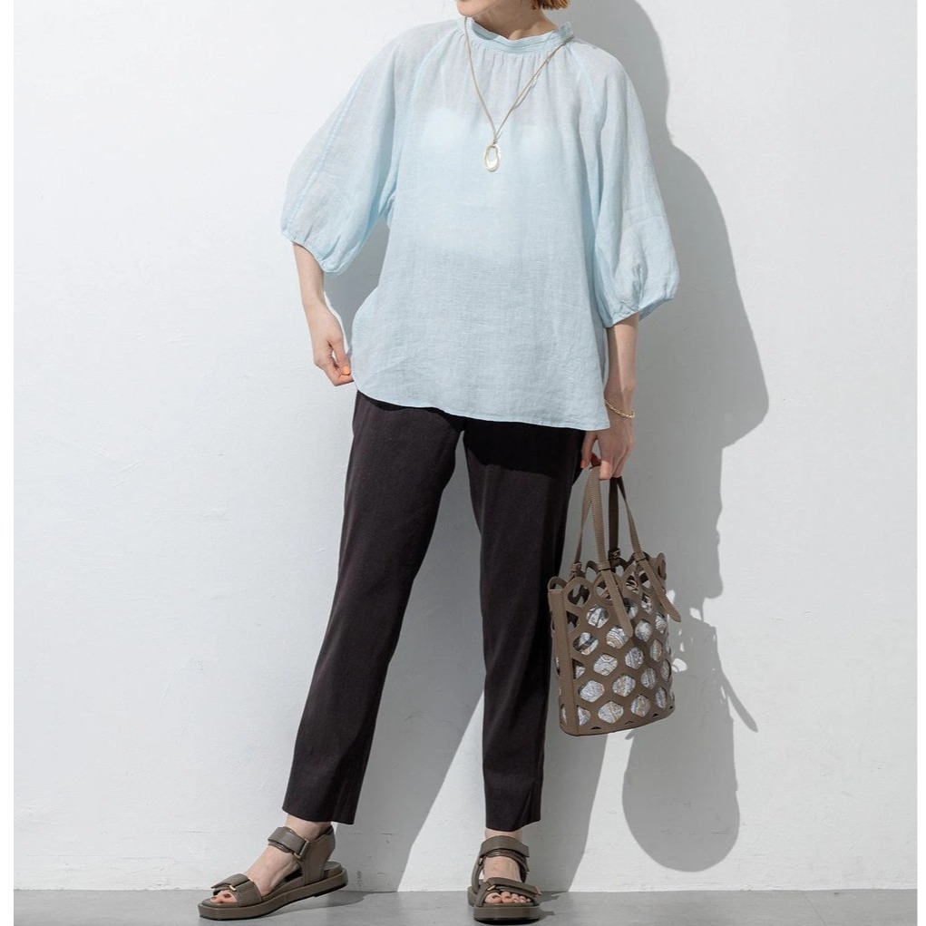 LIBECO社のピュアリネンならではの素材感と、程よいボリューム感のエアリーな袖が雰囲気のある一枚◎