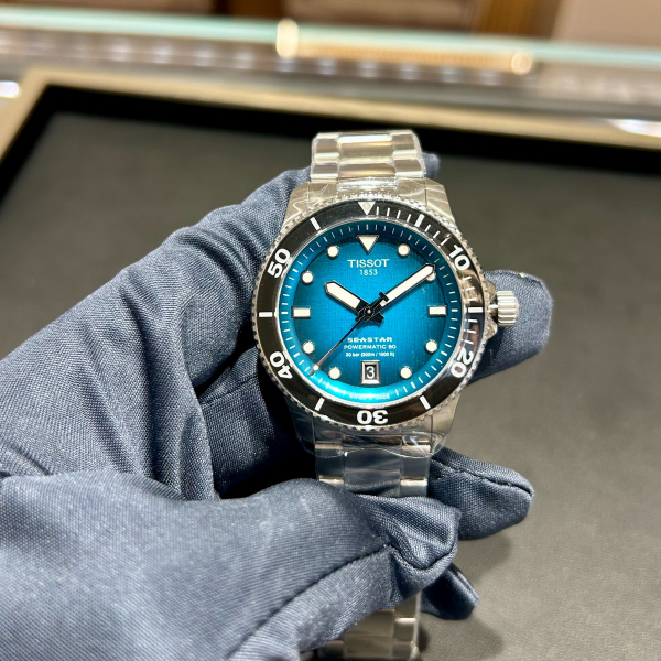 ブラックからターコイズブルーへと変化するデザインは、まるで海の深さを表現しているかのよう。