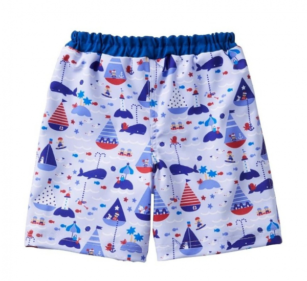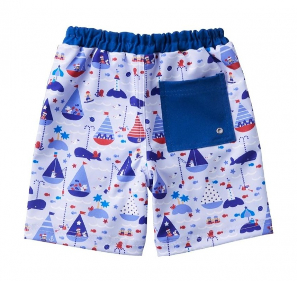 海のいきものや夏のレジャーが楽しく描かれた総柄プリントの水着。