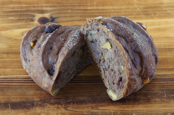 ブラックココアとチョコとオレンジ、くるみを練り込んで焼き上げました。