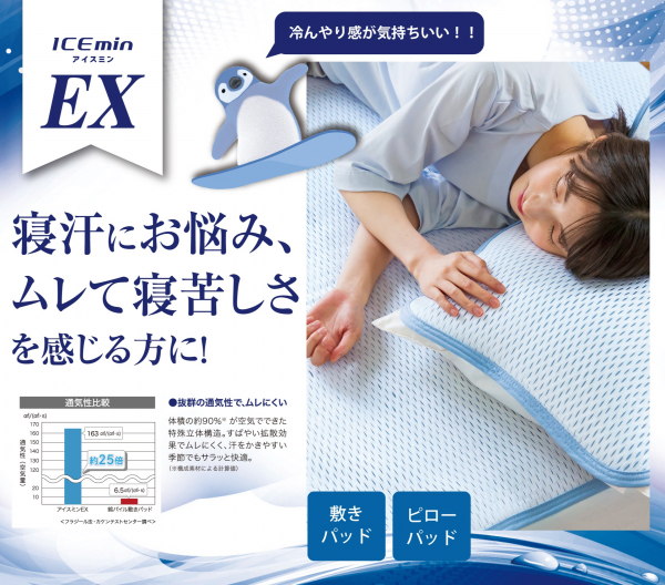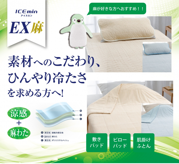アイスミンEX麻は『涼感生地』と『麻わた』のダブル素材で