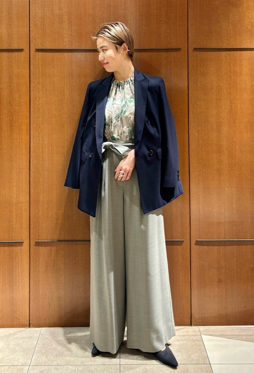 上品かつモードな着こなしを意識したジャケットスタイリング。