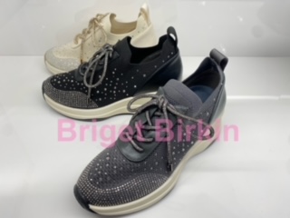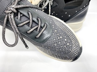 ♦キラキラビジューのシューレースが華やかなヒールアップのスニーカー。
