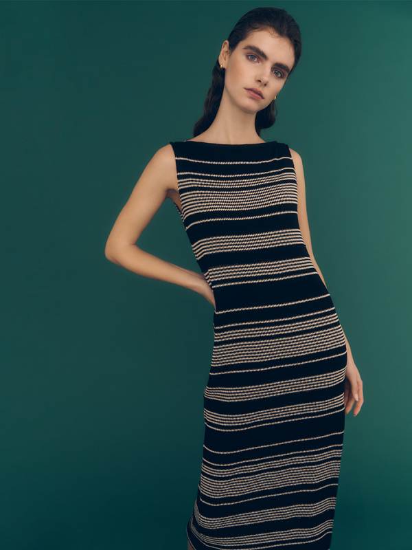 ボーダーに沿った直線的なネックラインがさり気ないこだわりです。