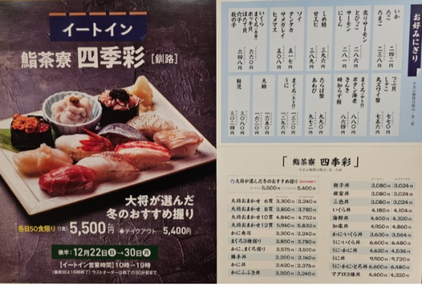 釧路の人気寿司店【鮨茶寮 四季彩】が登場!