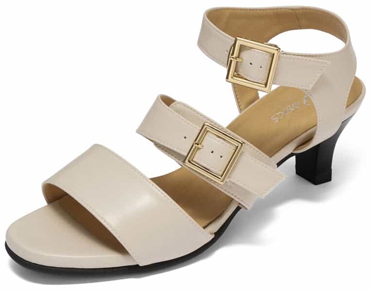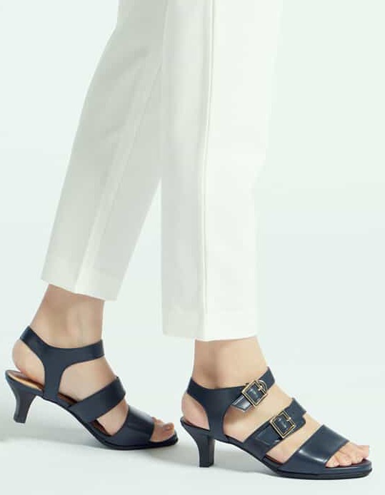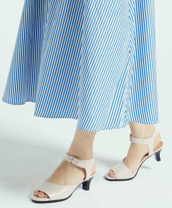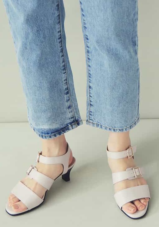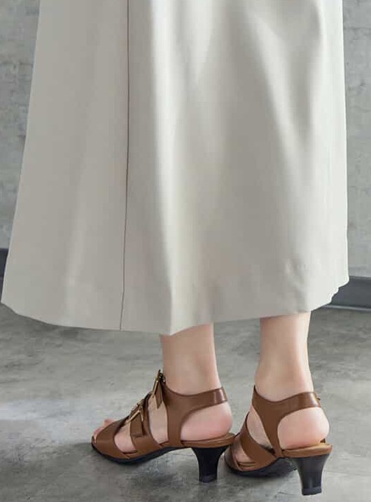 足首のベルトに配置した大きめのバックルがアクセントとなっています。カジュアルなスタイルはもちろん、